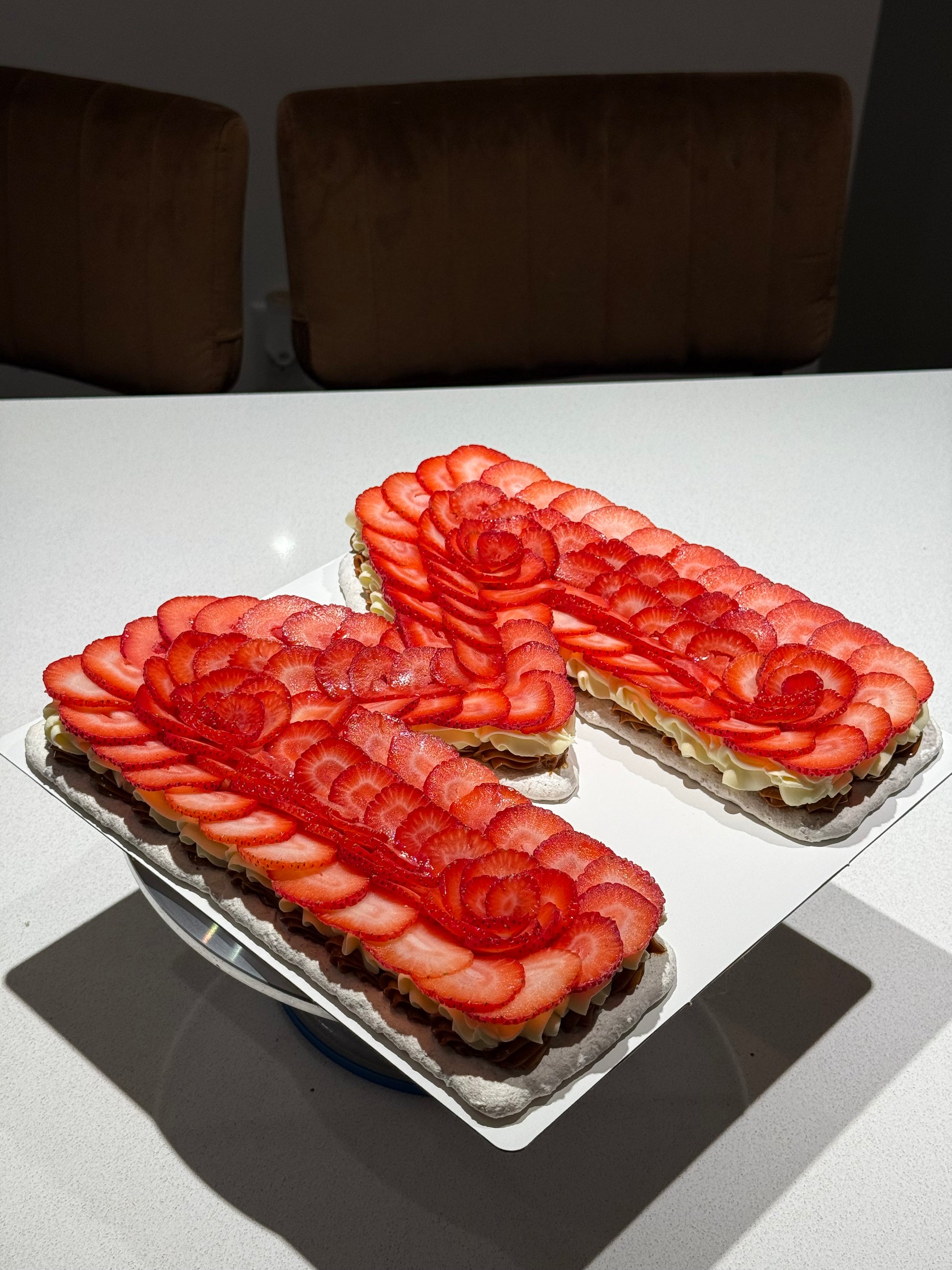 Una base crocante de merengue con almendras da el primer beso. Luego llega el dulce de leche, cálido y envolvente. Le sigue un bizcocho suave empapado en tres leches, cubierto por crema fresca y coronado con fresas irresistibles. Cakelova no es solo un postre, es una declaración de amor a los sentidos.