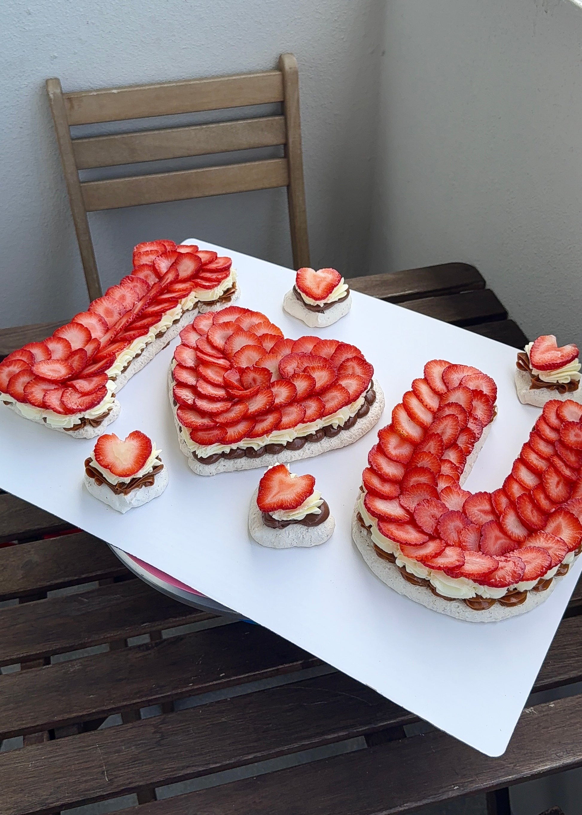 Custom Pavlova I Love You - Make any special moment unforgettable with our delicious custom pavlova in the shape of "I Love You"! Our pavlova features a crispy meringue base with toasted almonds, filled with a smooth homemade cream and topped with fresh fruits for a natural and refreshing touch. Choose between Nutella, Dulce de Leche, or a combination of both to create the perfect blend to suit your taste. Perfect for sharing on any special occasion, from anniversaries to Valentine's Day celebrations, our custom pavlova will make your moment even sweeter and more memorable.