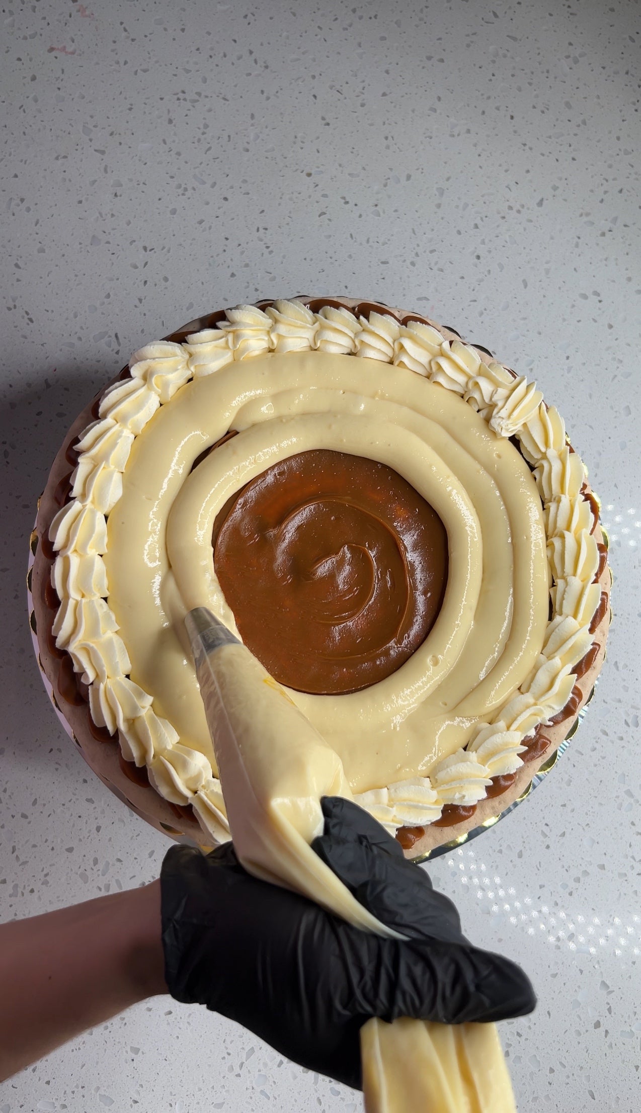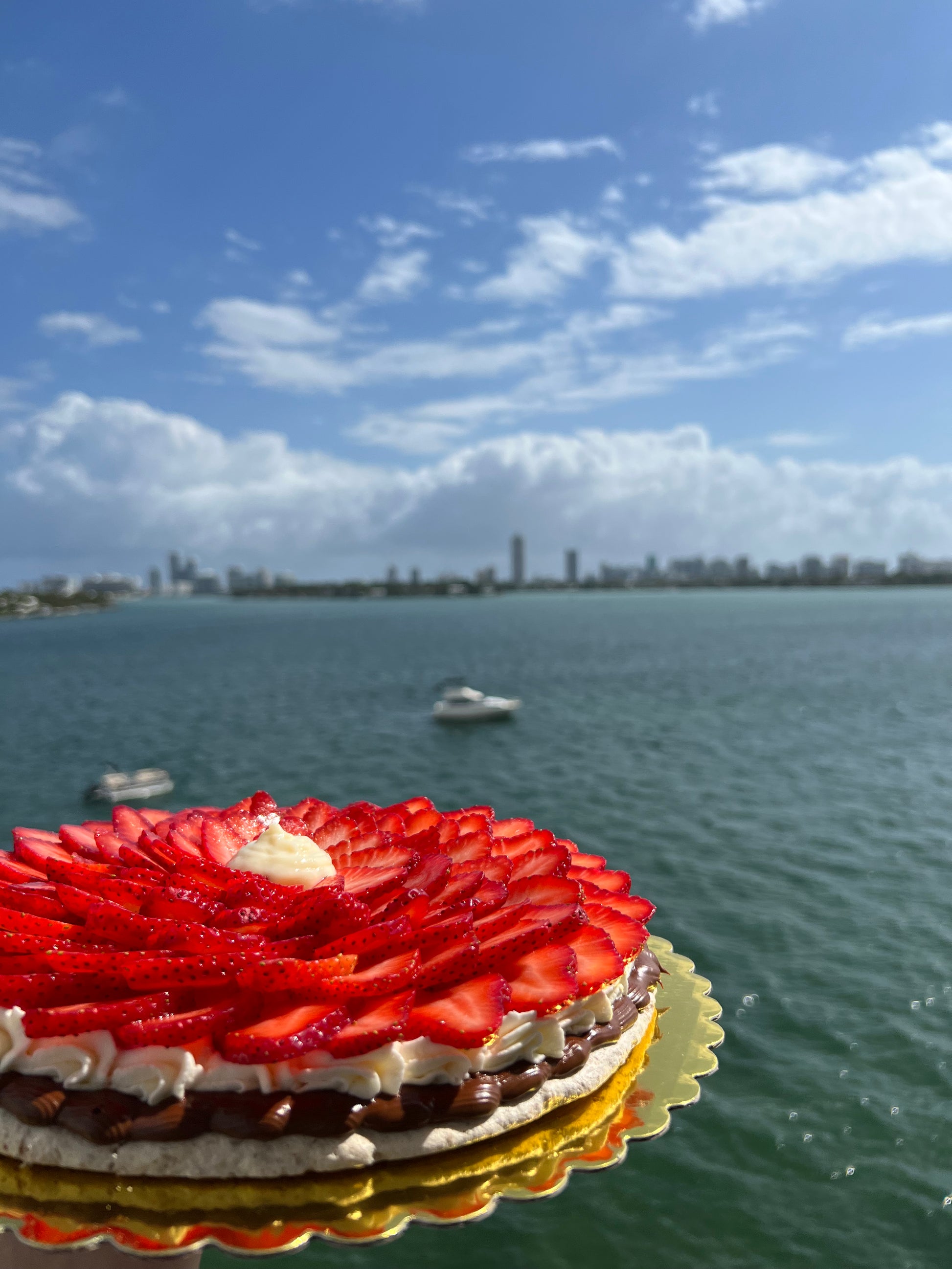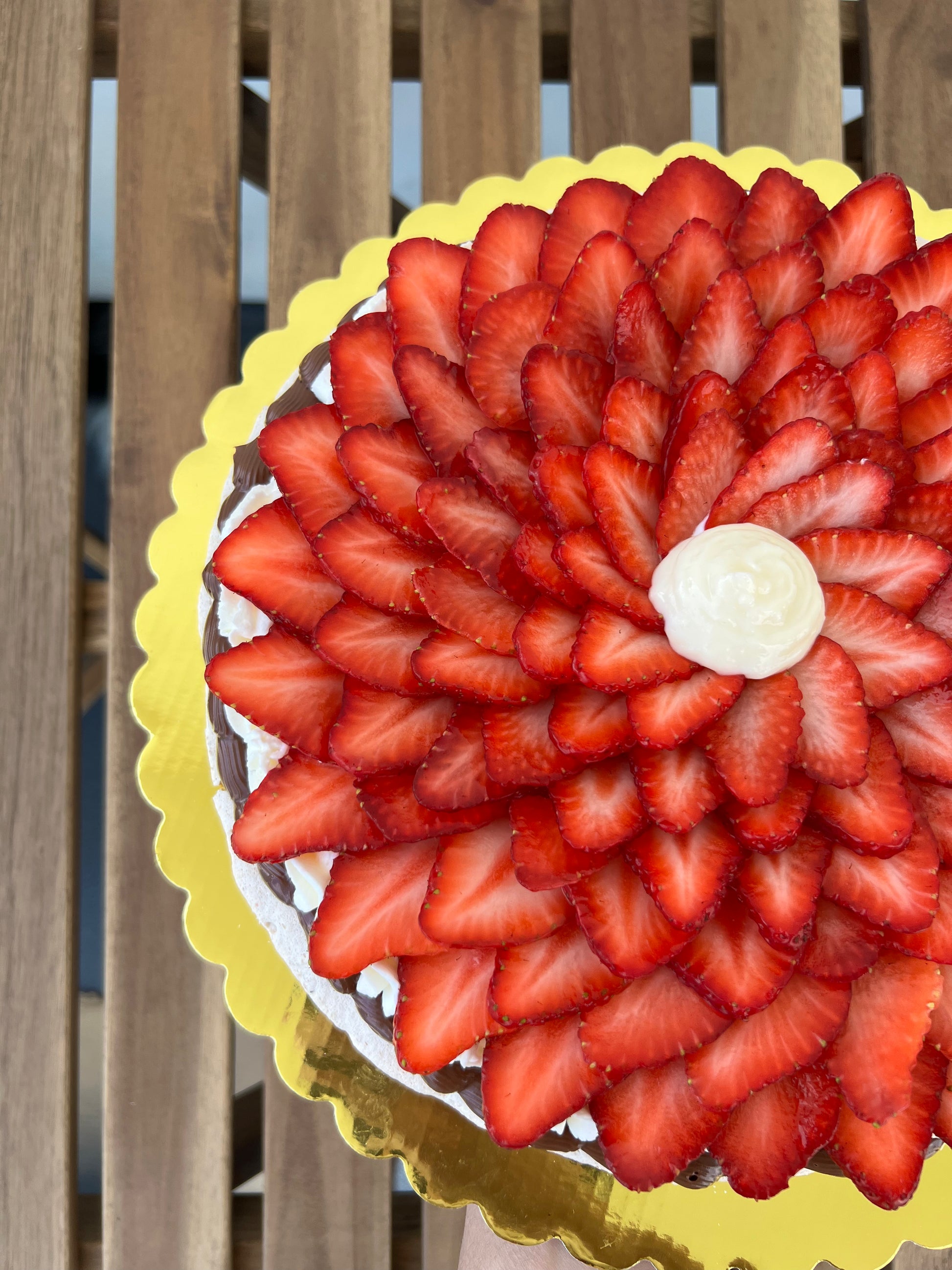 Our incredible Almond Pavlova accompanied by delicious dulce de leche, pastry cream, whipped cream and strawberry