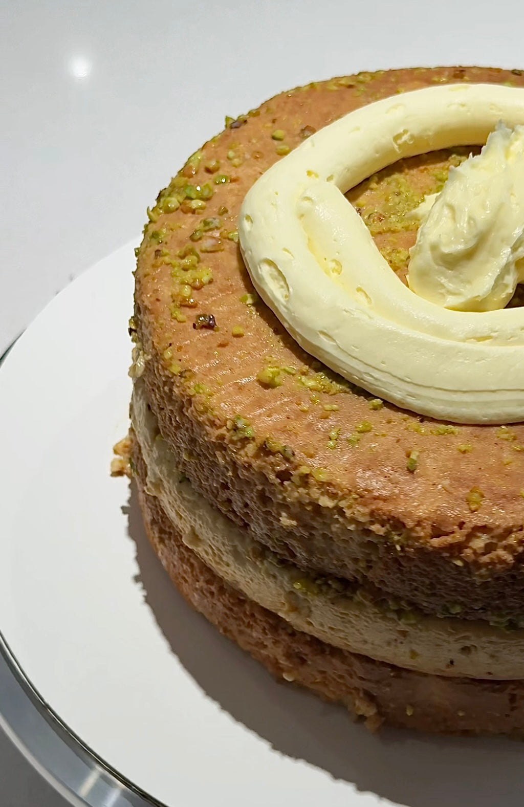 Dos capas de bizcocho de tres leches al pistacho envuelven un centro de quesillo cremoso, suave y seductor. Lo cubrimos con nuestra exclusiva crema de la casa —ligera pero adictiva— y lo coronamos con frambuesas frescas que le dan el toque perfecto de acidez y frescura.